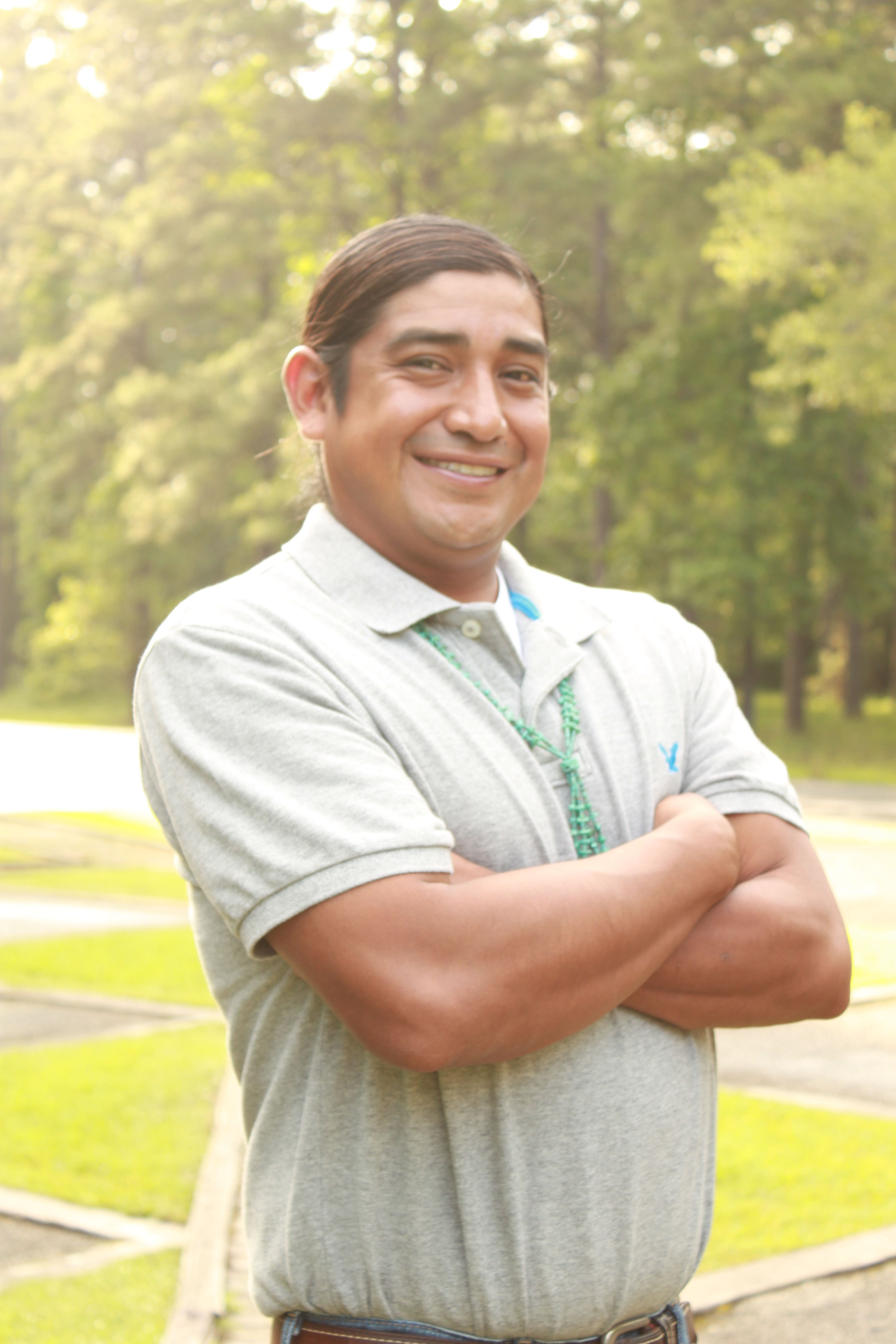 Elliott Rain Abbey is an enrolled member of the Coushatta Tribe of Louisiana and of the Kawaknasi (Wildcat) clan. He has been around basketry his entire life and has been creating pine needle art work for several years now. Each pine needle work is created by stitching together individually hand-picked, long leaf pine needles using raffia, either naturally or commercially dyed.